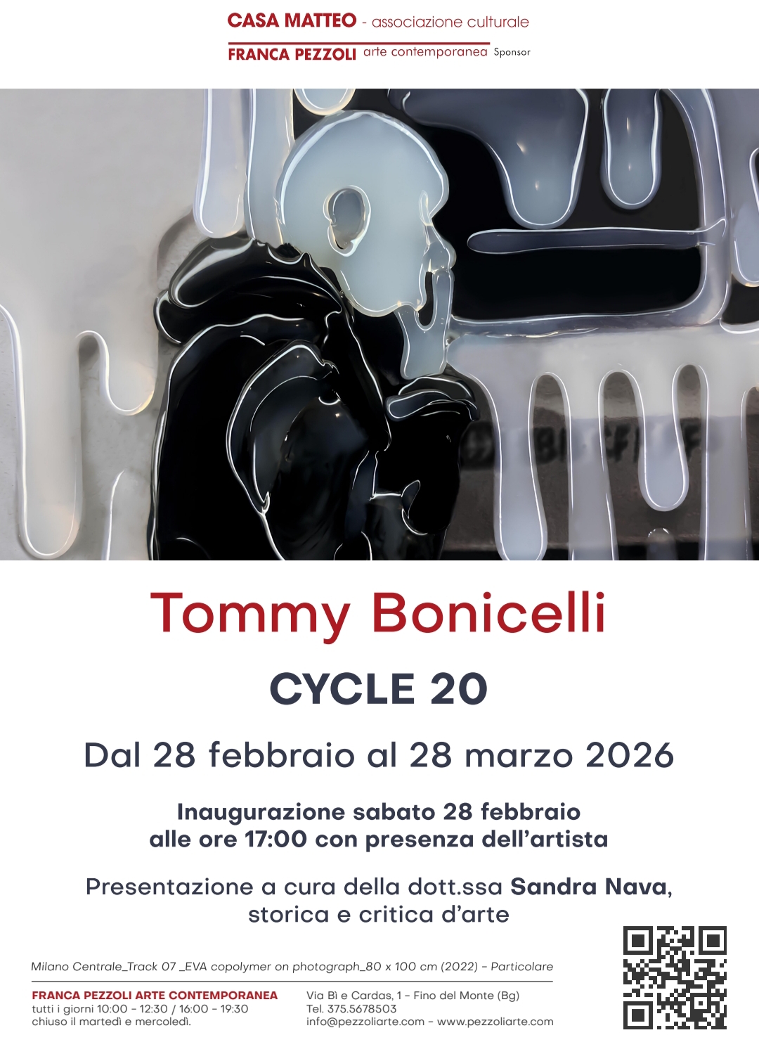 “Cycle 20” nasce da un ritorno. Non come gesto nostalgico, ma come atto di consapevolezza. Tornare a Fino Del Monte tornare al luogo dove tra il 2025/26 avevo il mio studio. E qui che ha preso vita il processo alchemico, attraverso il quale ho trasmutato la plastica in poesia dando origine all’ Ectoplastica: il progetto che ha segnato l’ inizio del mio percorso artistico e ha dato avvio a una ricerca che nel tempo, si è trasformata, ampliata e stratificata. Questa mostra celebra vent’ anni dalla mia prima personale, ma non si presenta come una retrospettiva. E’ piuttosto la chiusura di un cerchio, che proprio nel momento in cui sembra completarsi, si riapre. Un ciclo che torna al punto di partenza per generare nuove direzioni. In esposizione una selezione eterogenea di opere che attraverso gran parte del mio percorso: lavori storici, opere recenti e pezzi unici realizzati appositamente per questa mostra, pensati in relazione diretta con lo spazio e con il valore simbolico di questo luogo. Per la prima volta verrà inoltre presentato il Plastik Book, progetto editoriale che raccoglie e restituisce anni di ricerca sulla materia plastica come linguaggio, come processo e come trasformazione. Un oggetto che non documenta soltanto, ma continua il lavoro con altri mezzi. Cycle 20 parla di ritorno, ma soprattutto di continuità. Di come ogni fine contenga un nuovo inizio. Di come materia, come il percorso artistico, non si arresti mai davvero, ma cambi forma. Esporre oggi a Casa Matteo significa riportare qui ciò che è nato qui, trasformato dal tempo, dall’ esperienza e dalla ricerca. Un punto di equilibrio tra origine e presente. Un nuovo inizio che nasce dalla chiusura di un ciclo